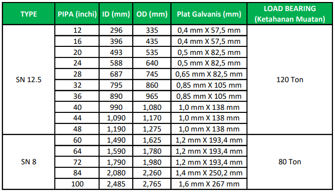 Spiral Culvert Plus merupakan gorong-gorong yang terbuat dari High Density Polyethylene (HDPE) yang dipadukan dengan Plat Galvanis yang mampu menahan beban hingga 120 ton. Tersedia dalam berbagai ukuran diameter.